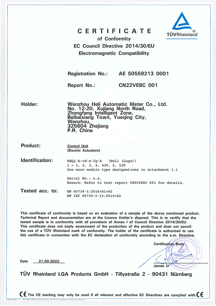 HEQ系列TUV-CE(EMC)證書