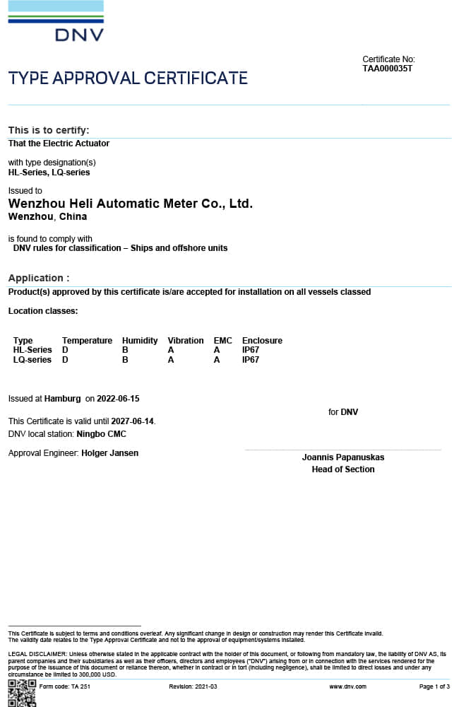 溫州合力自動化DNV船級社認證